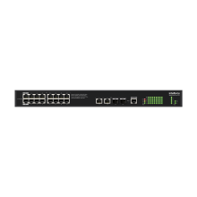 O SMART S2120G-HPA 240W tem 16 portas Gigabit PoE e 4 portas Uplink, sendo 2 SFP, ideal para CFTV com gerenciamento simplificado.